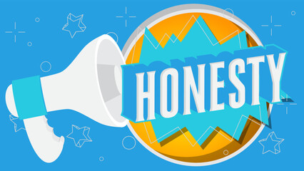 Honesty text with cartoon Megaphone. Vector Announcement illustration.