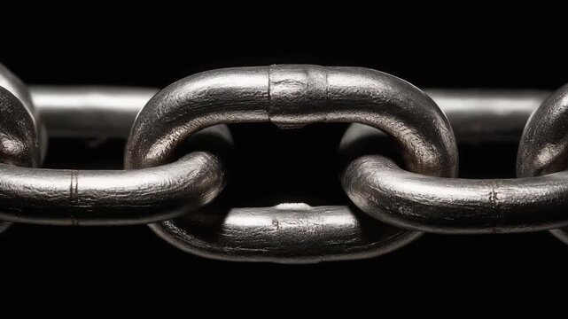 Close-up of a strong metal chain link on a dark background for industrial and construction themes