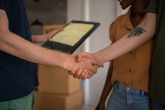 People shaking hands upon agreement