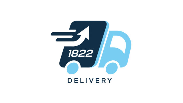 Delivery service logo featuring a truck with an upward arrow and the number 1822, representing fast and reliable transport.