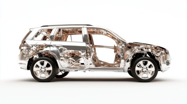An impressive cutaway view of a modern SUV, showcasing its intricate engineering design and structure, highlighting technology and automotive innovation.