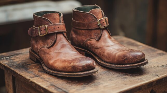 Distressed Brown Leather Boots With Buckles