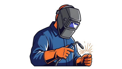 Skilled welder in protective gear performing welding with sparks flying, illustrating industrial craftsmanship and precision metalwork