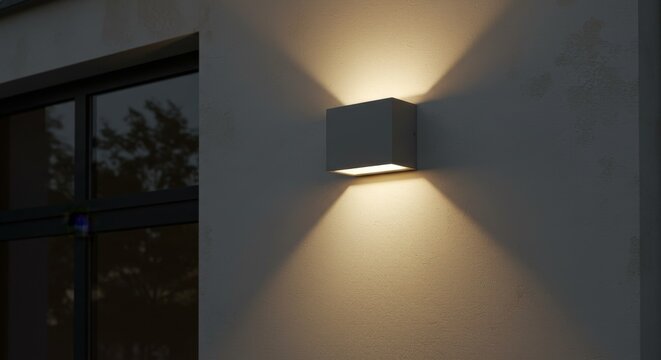 Modern Outdoor Wall Light Fixture - Contemporary gray cube-shaped outdoor wall light emitting soft, warm light. Ideal for modern home exteriors