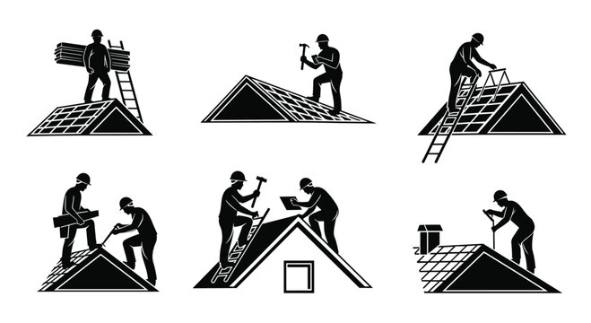Roofers at work constructing and repairing roofs, ensuring safety and quality for your home, a reliable construction crew for your project