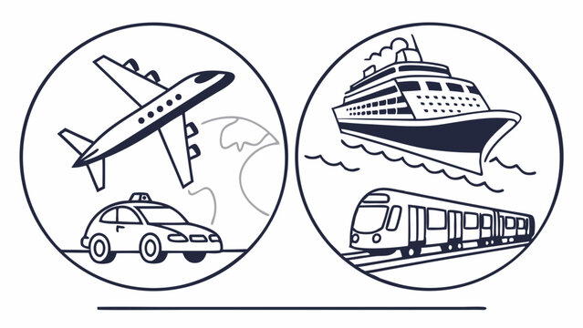 Travel and Transportation Icons Airplane Taxi Cruise Ship Train for Global Journeys Logistics Tourism and Commuting Services Efficient Mobility