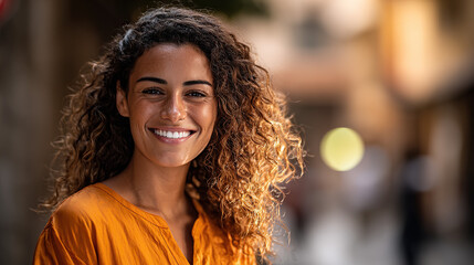 Smiling delivery professional in orange, exuding warmth and approachability, embodying reliable service with a personal touch.