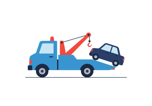 Blue tow truck hauling dark blue car, suitable for towing services advertising, transportation industry promotions, car repair businesses.
