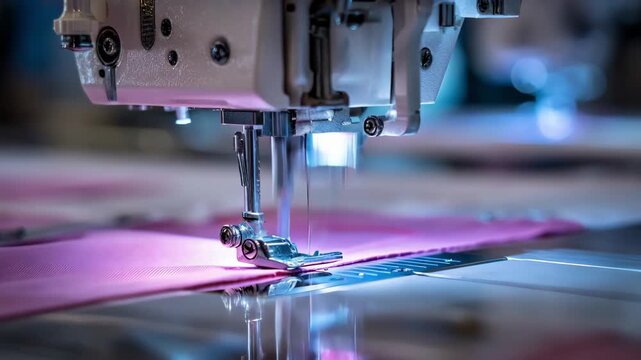 Automated sewing machine efficiently repairs uniform fabric tears and reattaches buttons with precision in a modern techdriven repair station.