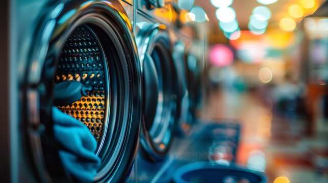 Public laundry machines providing dry cleaning and laundry services for public use.