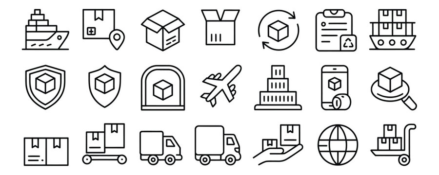 E-commerce Guarantee, Delivery, and Support Icons Set.