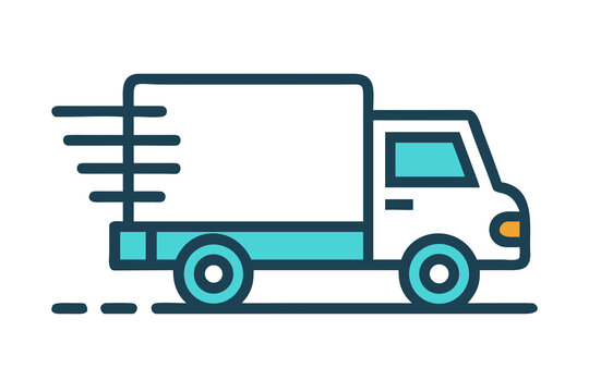 Colorful and modern graphic of a delivery truck in motion, representing rapid and reliable logistics and transport.