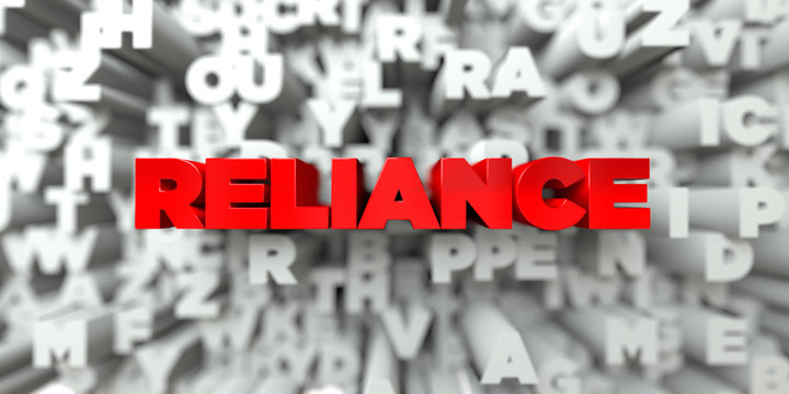 RELIANCE -  Red text on typography background - 3D rendered royalty free stock image. This image can be used for an online website banner ad or a print postcard.