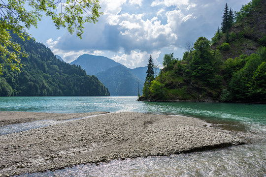 Lashipse River flows into the Ritsa Lake in Mountains. Relict National Park. Abkhazia.
