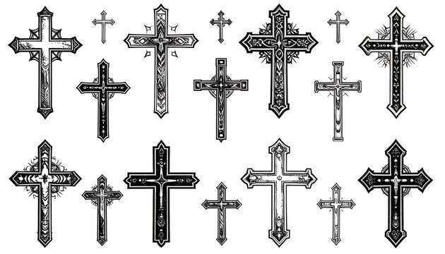 Various ornate black and white crosses