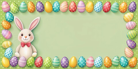 Happy Easter Day holiday horizontal banner with colored eggs in grass. Traditional spring religious celebration greeting card. Vector eps drawing Christian festive poster