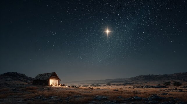 Star of Bethlehem Over Nativity Scene Biblical Christmas Story Hope and Faith Image