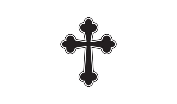 Decorative religious cross silhouette with ornate ends for Christian church symbolism and faith concepts.
