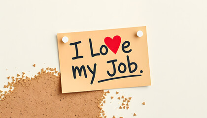 I love my job reminder note on cork board isolated with white highlights, png