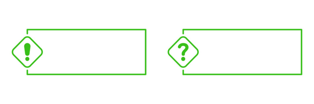 Green Exclamation And Question Mark Icon Set. Exclamation Line Box Attention. Communication And Information Signage. Isolated Vector Illustration