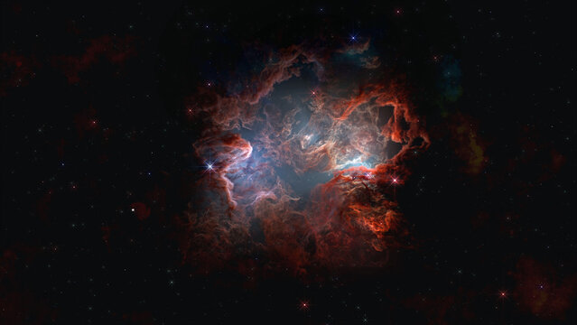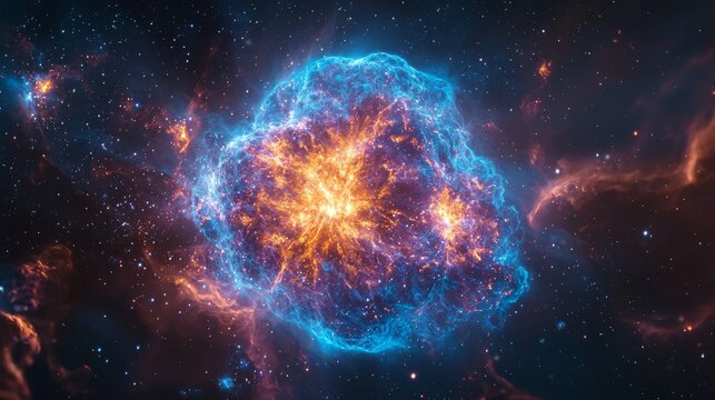 Supernova remnant Crab Nebula,3D render background.3D rendered nebula formed by supernova explosion