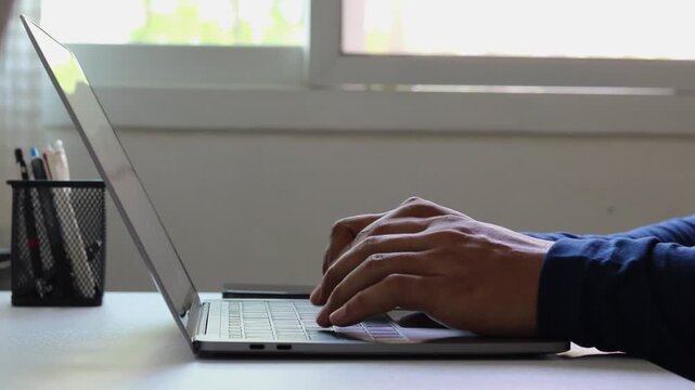 Person using laptop for online work communication, chatting with AI, studying, remote work, digital customer service, freelance lifestyle, live chat support, e-learning, online business technology.