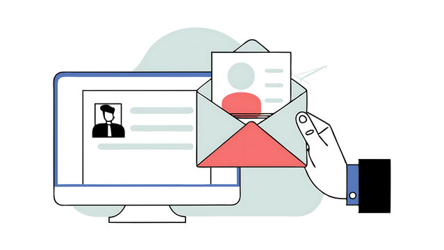 Online video interview illustration with businessman on computer screen for remote work, virtual meeting, recruitment and digital communication concept