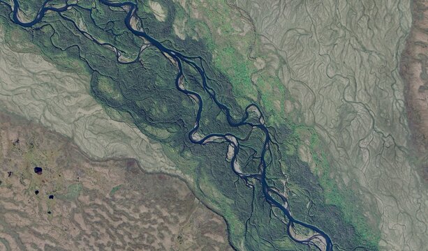 Alaskan River Delta: High-Resolution Aerial View of Braided Channels, Glacial Meltwater, and Sediment Patterns