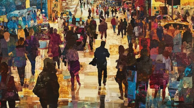 Abstract rendition capturing the hustle and bustle of urban pedestrian traffic