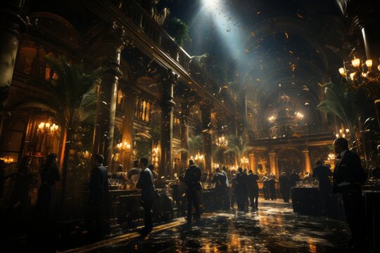 Gold and blue Fireworks and bokeh in New Year eve and copy space. Abstract background holiday