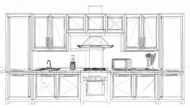 Beautiful Stylish kitchen interior sketch design and drawing with modern furniture. Combination of photo and sketch