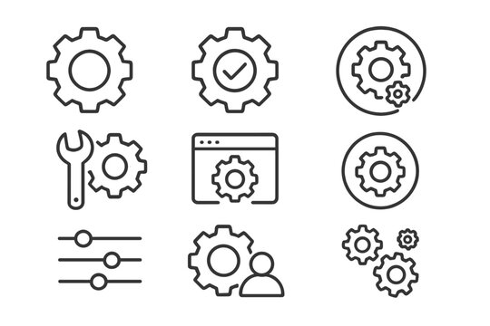 Streamline your workflow with these adaptable gear icons for engineering, automation and system integrations