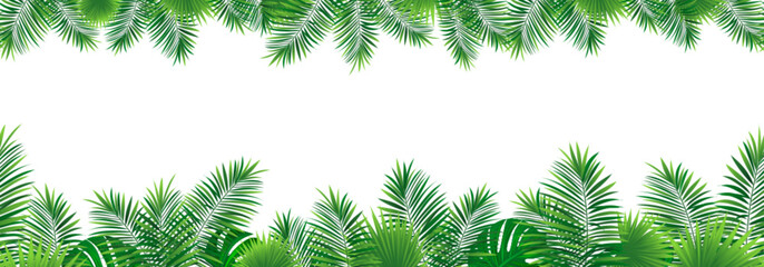 Amazon tropical leaves seamless pattern. vector illustration. Rainforest foliage template border frame. Jungle plants repeated banner. Green backdrop with tropic palm leaf monstera. Summer background