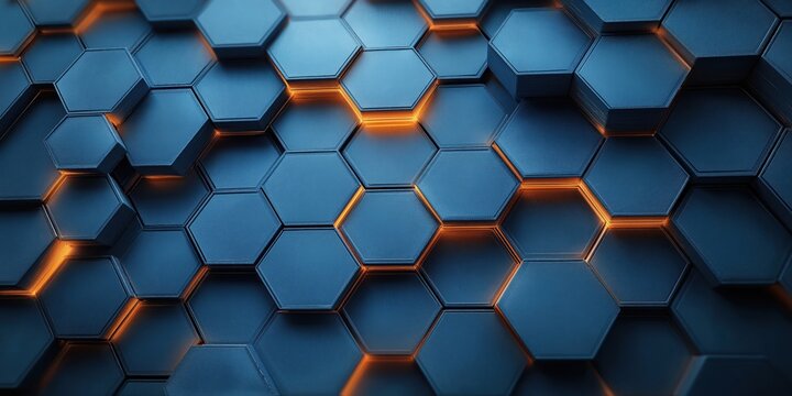 Abstract hexagon network with electric blue glow on sleek dark gradient, futuristic repeating honeycomb texture