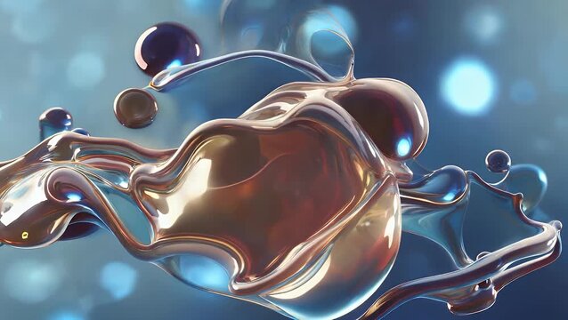 continuously repeating moving of amorphous fluid forms in cyan shade in ultra high definition