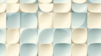 Minimalist geometric seamless pattern featuring small curved squares Abstract background in light blue and beige tones Perforated texture with a modern repetition design