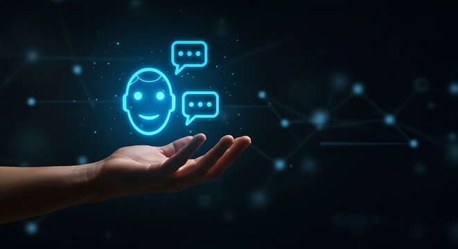 Glowing blue human icons connected by network lines representing digital communication and social connectivity in a virtual space