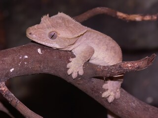Closeup on the crested gecko or eyelash gecko, Rhacodactylus ciliatus