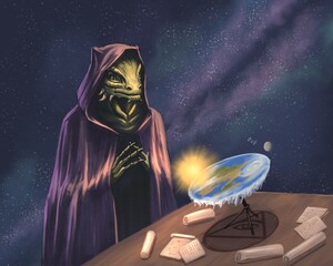 Fantasy reptilian over flat earth