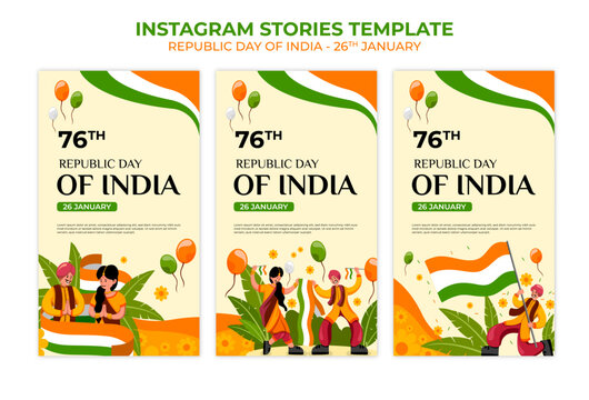 Happy Republic Day, India with Landmarks and Flag. Sale. Republic Day Banner,