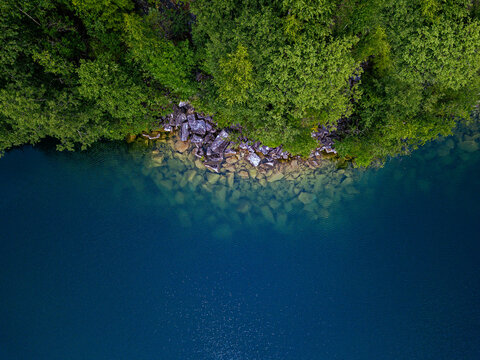Russia, Republic Of Karelia, Sortavala, Aerial view of rocky shore of Lake Light