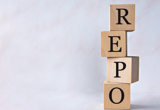 REPO - acronym on wooden cubes on a white background