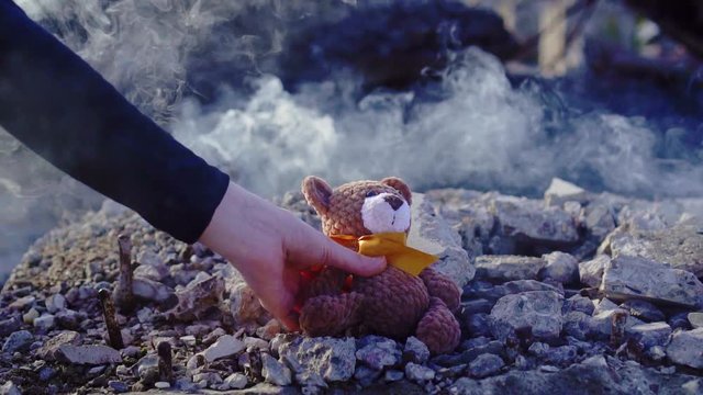 Mountain rescue service provide operation outdoors in winter in forest, injured person in stretcher.