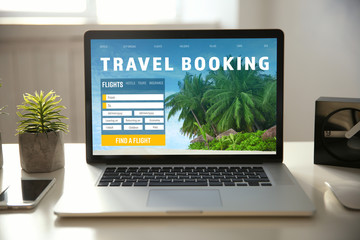 Travel online reservation banner on tablet screen