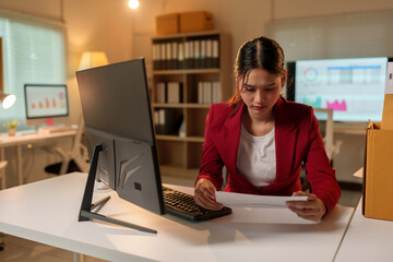 Unemployment ,jobless crisis, worker layoff concept, Close-up of young businessman pack stuff off the desk and holding boxes of self stuff when quitting the job after send resign letter from company