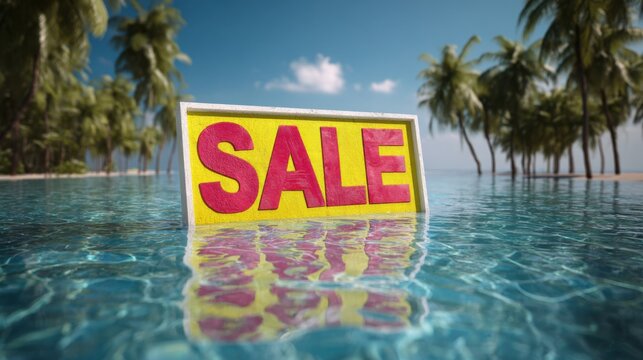 A summer sale promotion banner offering 40 percent off with a beautiful tropical beach scene including palm trees and a sun.