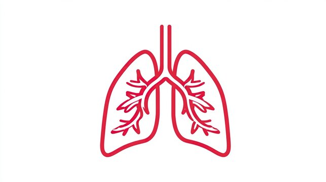 Simple line art illustration of a pair of human lungs in red, showcasing the bronchial tree within each lung, set against a white background