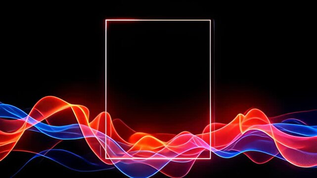 Digital glitch Border Frame pulsing in wave patterns flows smoothly, adorned with gradients of resplendent colors moving rhythmically, as luminescent strands of light intertwine, giving life