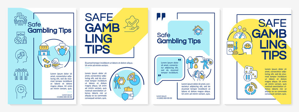 Safe gambling tips blue and yellow brochure template. Booklet print design with linear icons. Vector layouts for presentation, annual reports, ads. Questrial-Regular, Lato-Regular fonts used