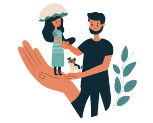 Happy couples celebrating human rights day with pet and technology